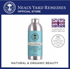 Dusting Powders and Body Powders, like Neal’s Yard Remedies Lavender & Tea Tree Body Powder, are made with corn starch (not talc), which when applied to the body help it to absorb oils and moisture, impart fragrance and to smooth the skin.