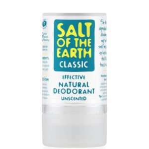 Salt of the Earth Natural Deodorant – one of the best natural gender-neutral deodorants we’ve tested. It doesn’t have a scent but lasts all day long, even in hot weather. You do need to apply it to wet skin & don’t put the lid on the deodorant until it has dried, or dry it off first. Highly recommended – stops sweat smell and lasts all day.